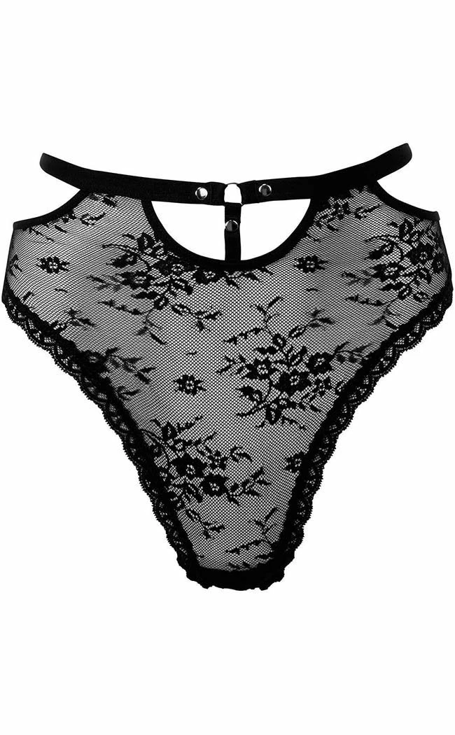 Live in a realm of unnamable horrors in the Sheer Evil panty!Β Let the soft, floral lace caress your skinΒ and crown your curves with delicate trims.Β Sexy cutouts at the hips bring you to the edge of the night, waiting to fall in.