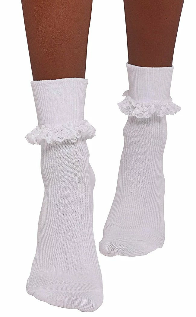 Add a dash of light to your black soul – the playful ‘Supreme Being’ ankle-socks are just the perfect touch to your daily adventures. Featuring a ruffle trim and contrasting cross-embroidery. So nostalgic and a must-have!