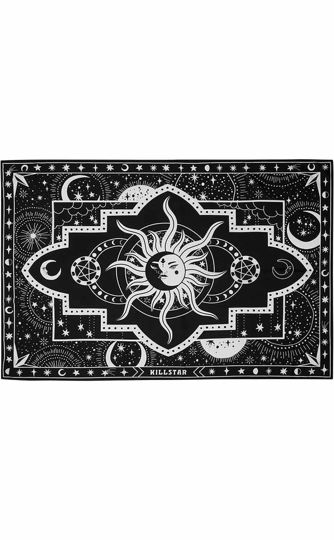 Unlock a new realm of style with the Dimensional Key Tapestry! This giant art piece features a contrasting print with occult and celestial motifs on soft, sturdy fabric.