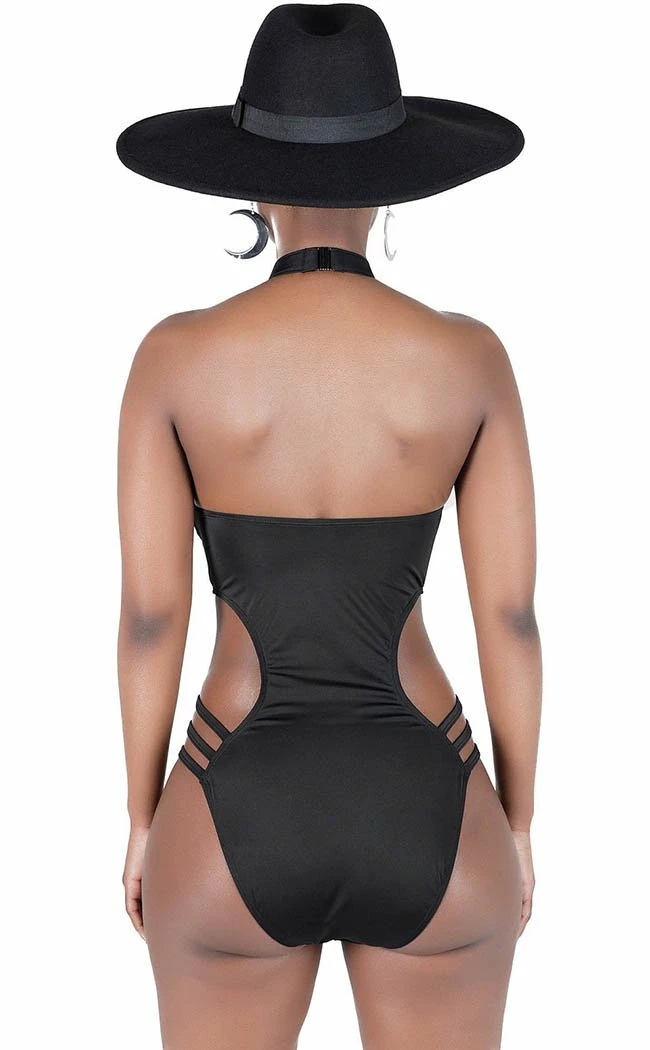 This magical bodysuit features a sultry halter neck withΒ a lace-up look front.Β Seductive cut-outs sit above the strappy hips.Β Perfect for romantic nights in or pairing with leggings and flares for unholy nights out!