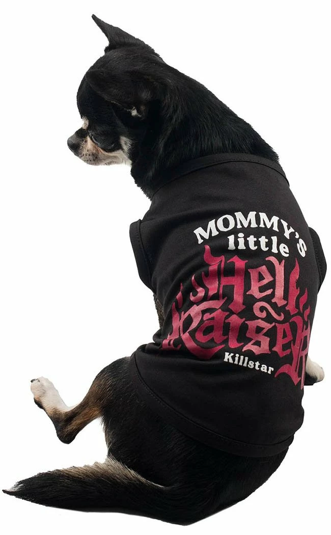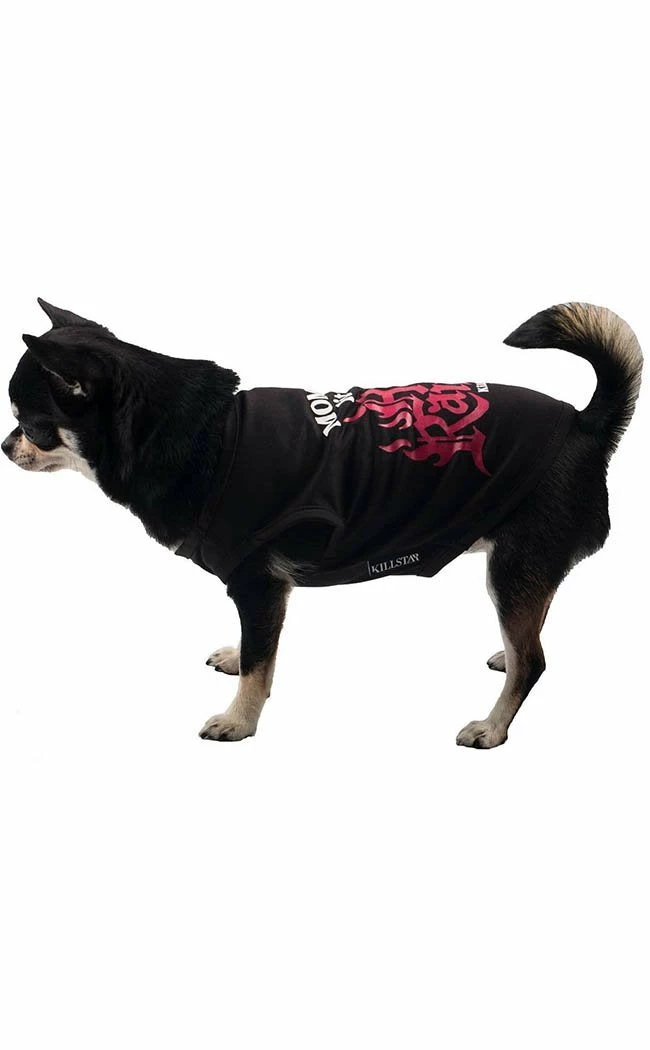 Give your little hellraiser the threads they deserve.Β Made of super-soft jersey, this little outfit features a large neck, a contrastingΒ print andΒ holes for the front legs.Β Β The vest is light and ideal for dressing up in warmer weather so you can match with your furry bestie.