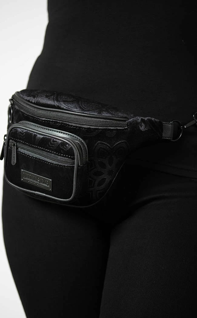 Keep yer hands free for mischief with the Night Geist Waist Bag!Β Made with luxe velvet, this baby featuresΒ a spacious main compartment, a front pocket and an extra zip compartment for storing smaller items. The adjustable waist strap is made with high quality vegan leather to match the trims so you can clip it and go about yer sinful day!