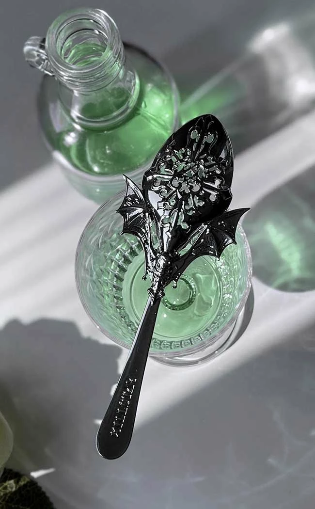 Complete the true absinthe drinking experience with the Pick Your Poison Absinthe spoon! The metal of the spoonΒ has an intricate openwork design that looks fabulous while you dissolve your sugar, oozing Victorian vibes with a gothic twist courtesy of the batwing details.