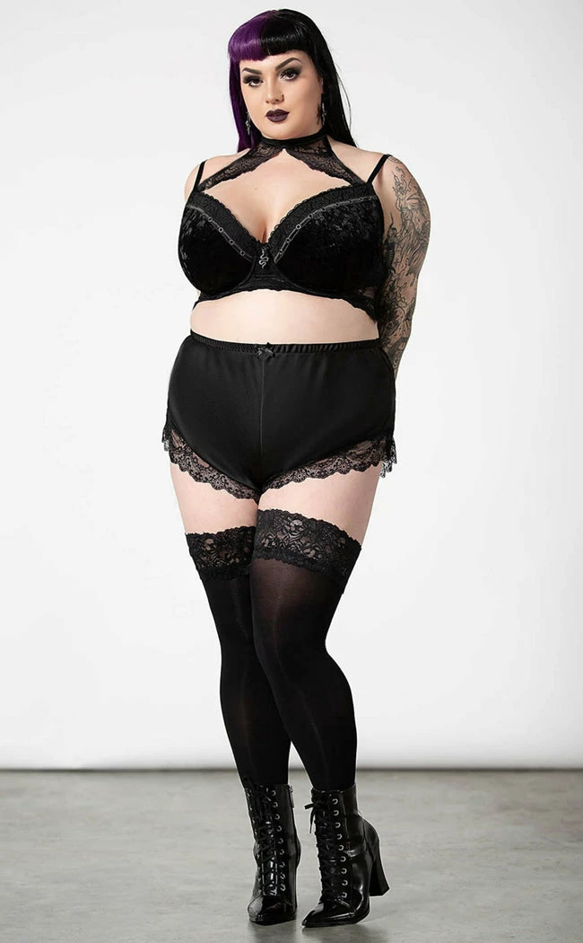 Shed yourself of earthly trappings and slip into the Severina Satin Shorts.Β The soft satin fabric glides smoothly against the skin, fitting perfectly with an elasticated waistband topped by a ribbon bow. With lacy trims to have you feeling powerful and fancy, you’ll never lounge around or slumber unfashionably again!