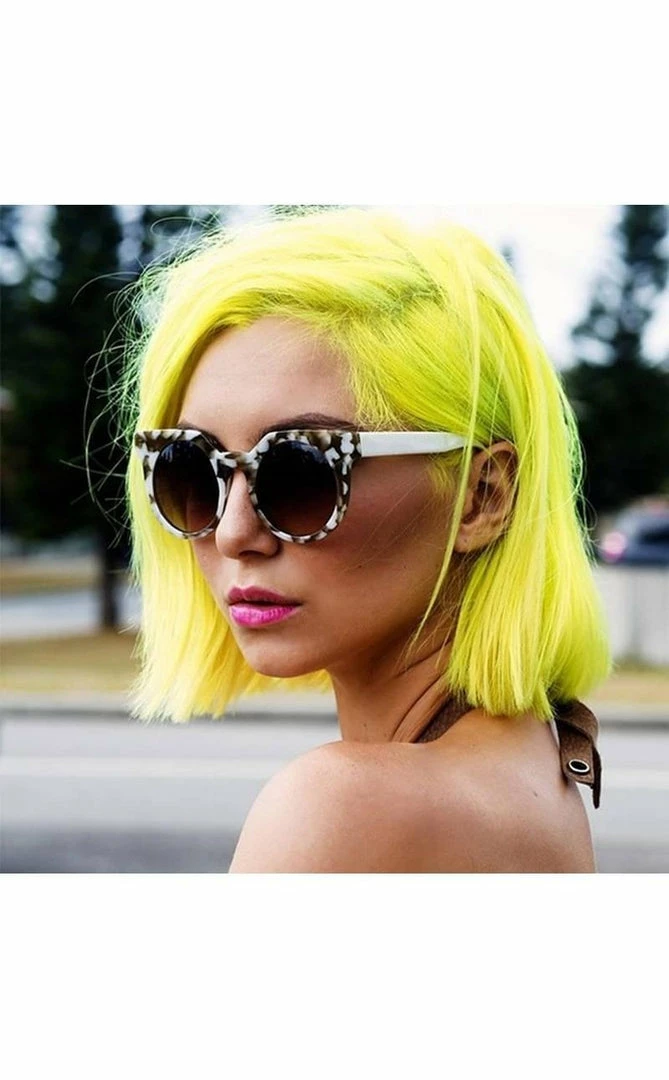 This striking colour, when applied to bleached or pre-lightened hair will be a gorgeous neon yellow.