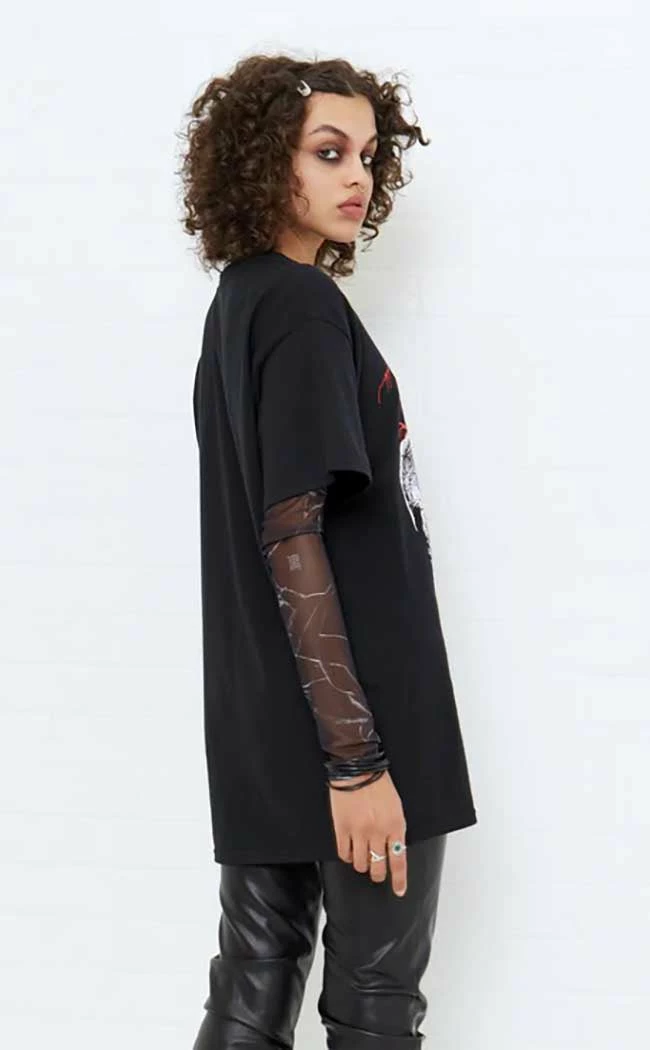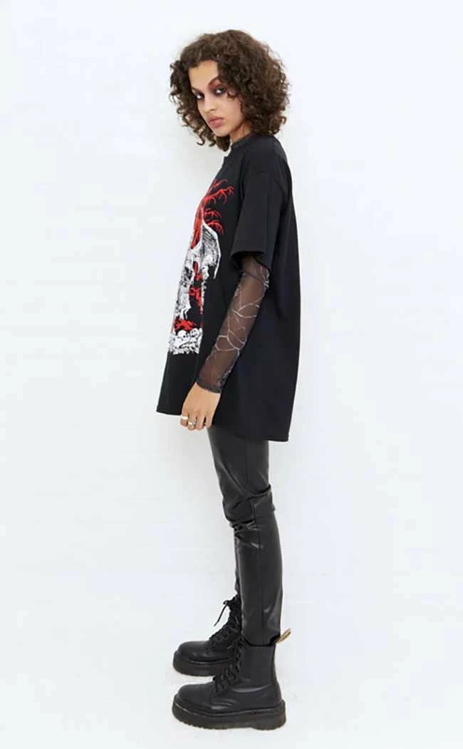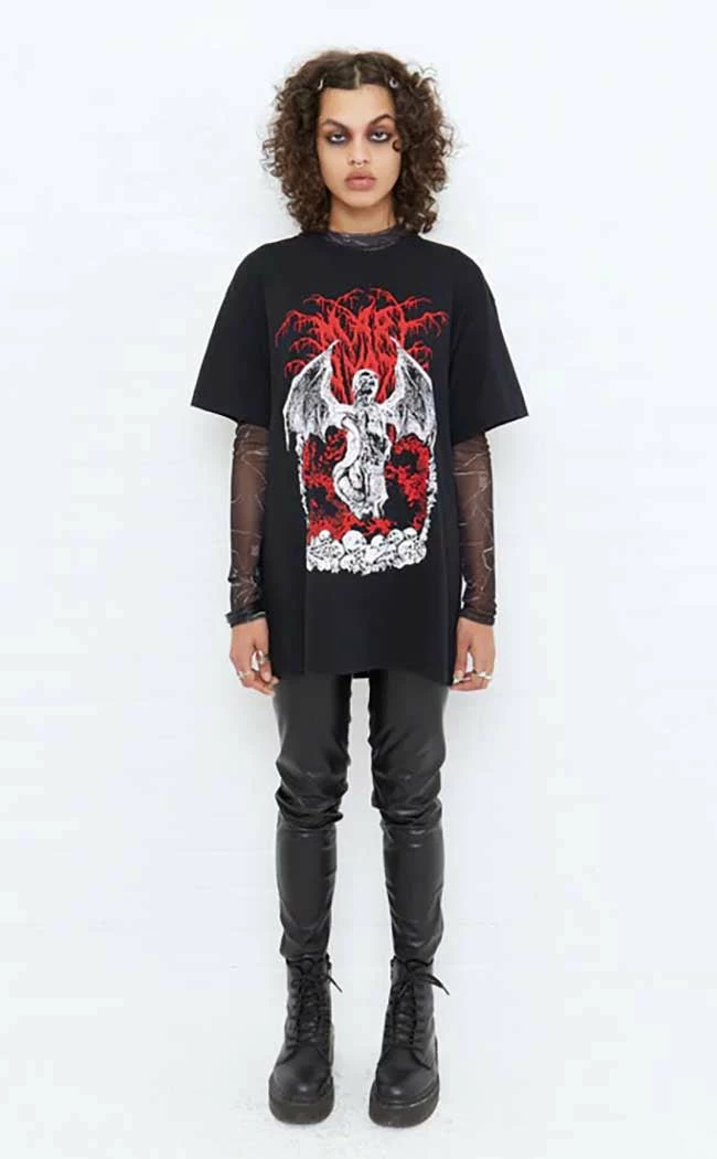 Set your inner demons free in the Death Angel Oversized Tee. Durable, soft cotton forms an oversized silhouette; the front features a bold, contrasting print in white with blood-red metal font. Wearable with anything from jeans and leggings to shorts n skirt, the Death Angel tee will be your new demonic go-to!