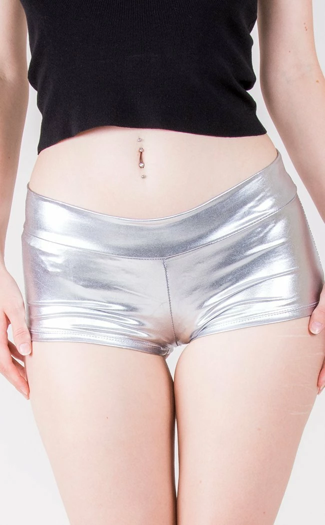 These shiny silver hot pants are perfect for roller derby, pole dance, wearing under lace leggings or petticoats, or wearing over fishnet tights with big boots! Sexy or cute, they can be worn anywhere and come in several differentΒ colours.Β