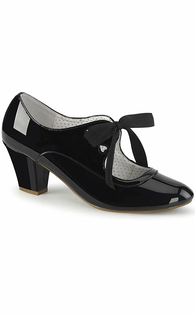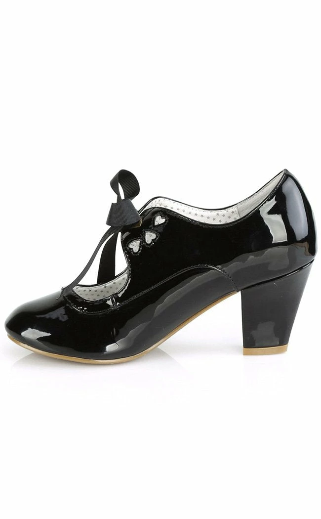 2 1/2″ (6.5 cm) Cuben Heel Mary Jane Pump W/ Ribbon Tie & Heart Cutout Detail