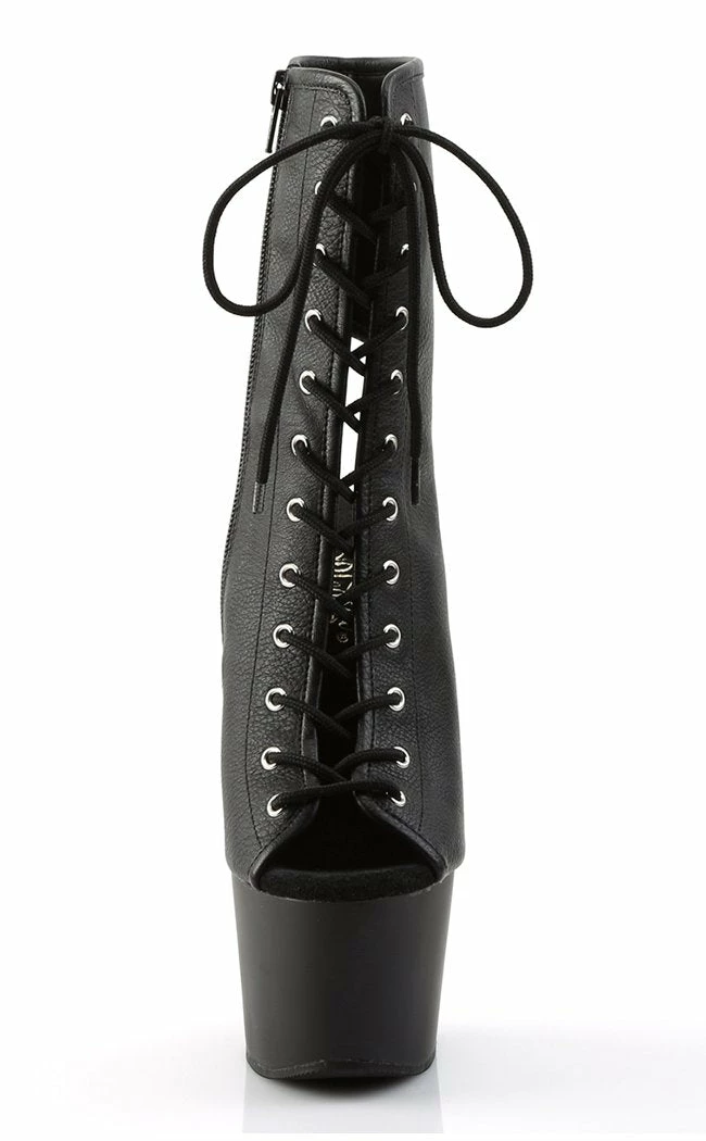 7″ Heel, 2 3/4″ PF Open Toe/Heel Ankle Boot, Side Zip