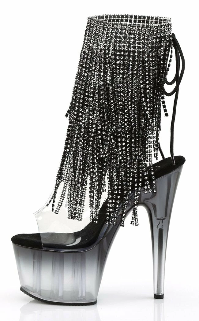 7″ Heel, 2 3/4″ PF Open Toe/Heel Lace-Up Fringe Ankle Boot
