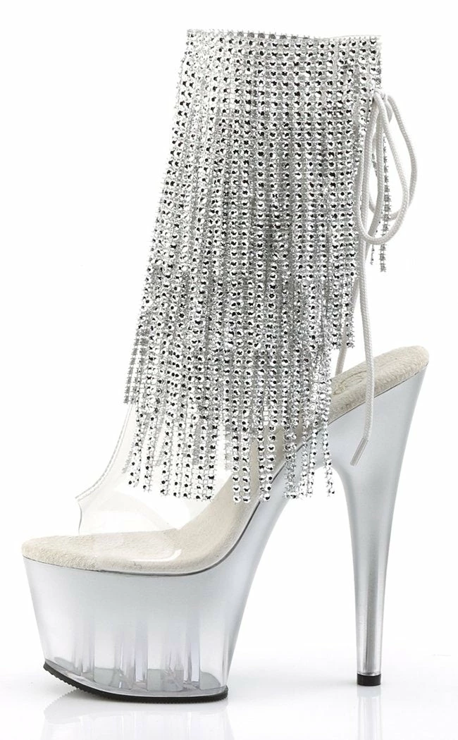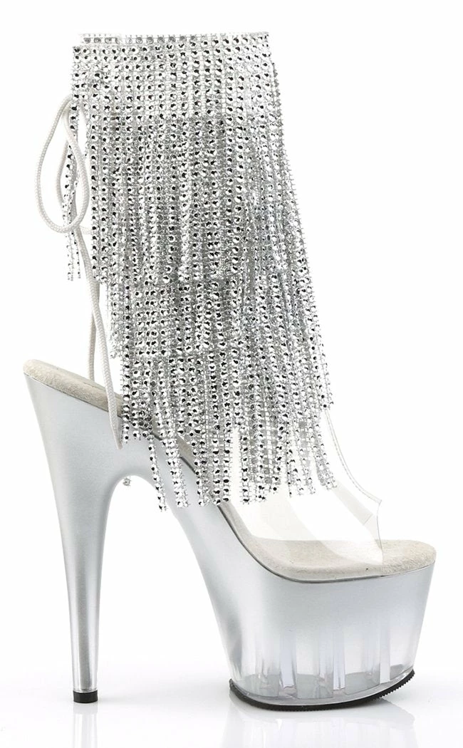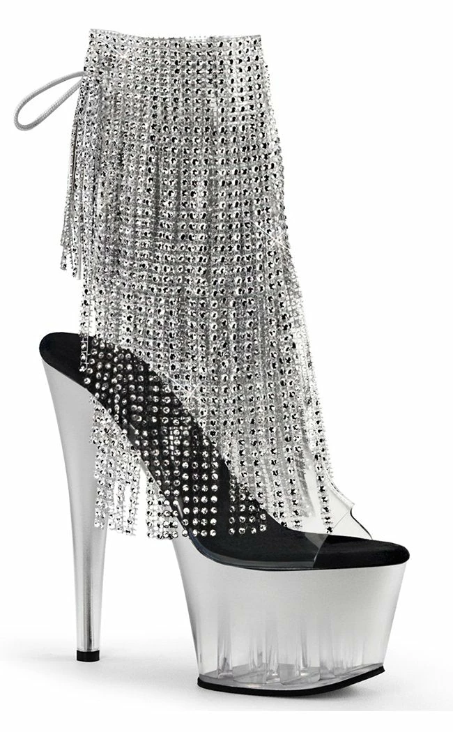 7″ Heel, 2 3/4″ PF Open Toe/Heel Lace-Up Fringe Ankle Boot
