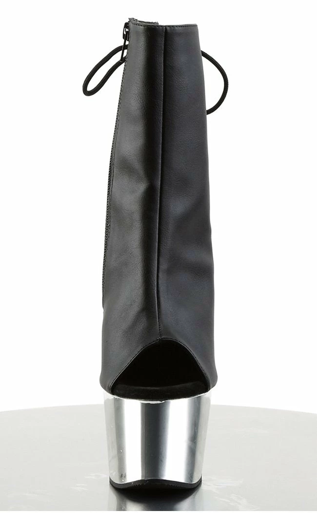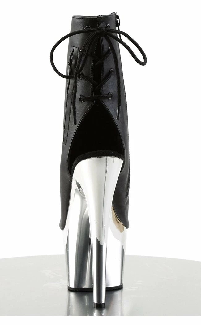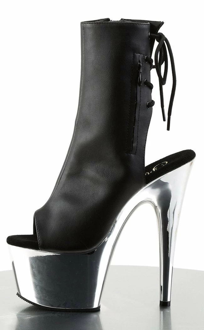 7″ Heel, 2 3/4″ Chrome Plated PF Open Toe/Heel Ankle Boot