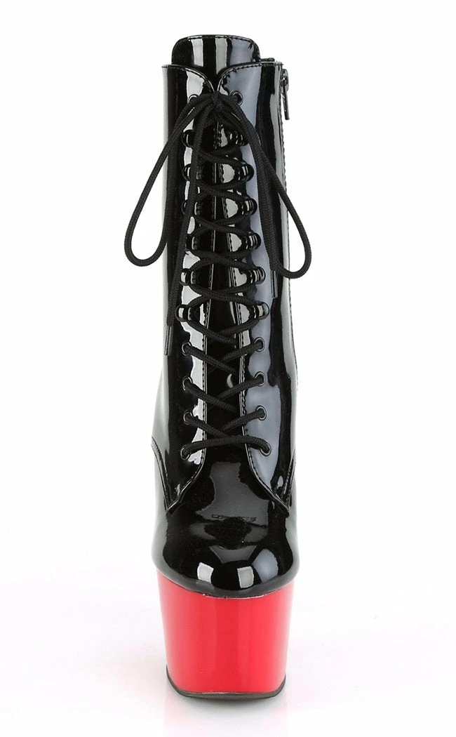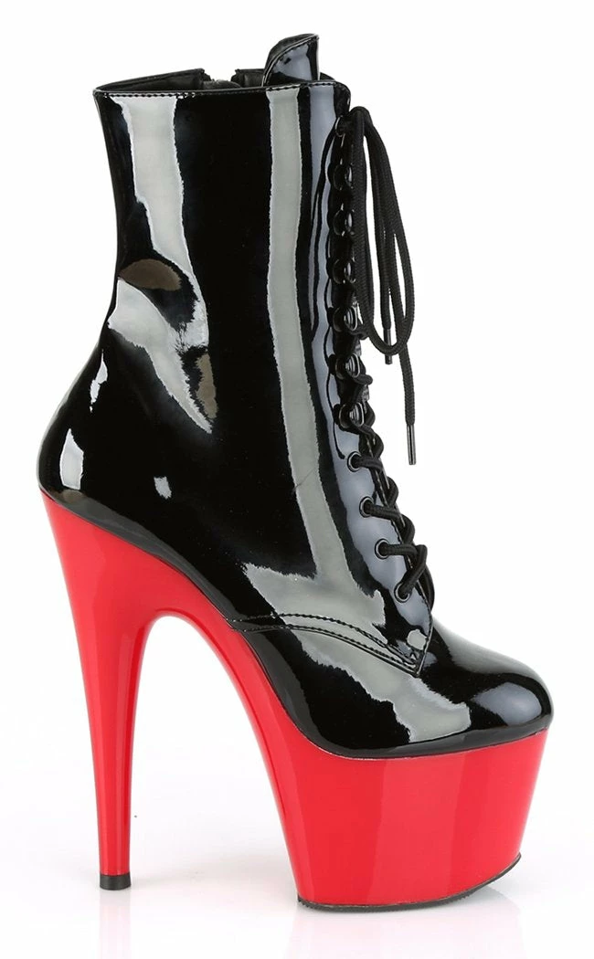 7″ (178mm) Heel, 2 3/4″ (70mm) Platform Lace-up Front Ankle Boot , Inside Zip Closure