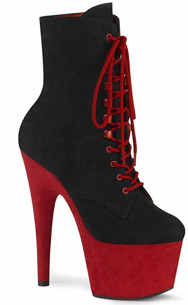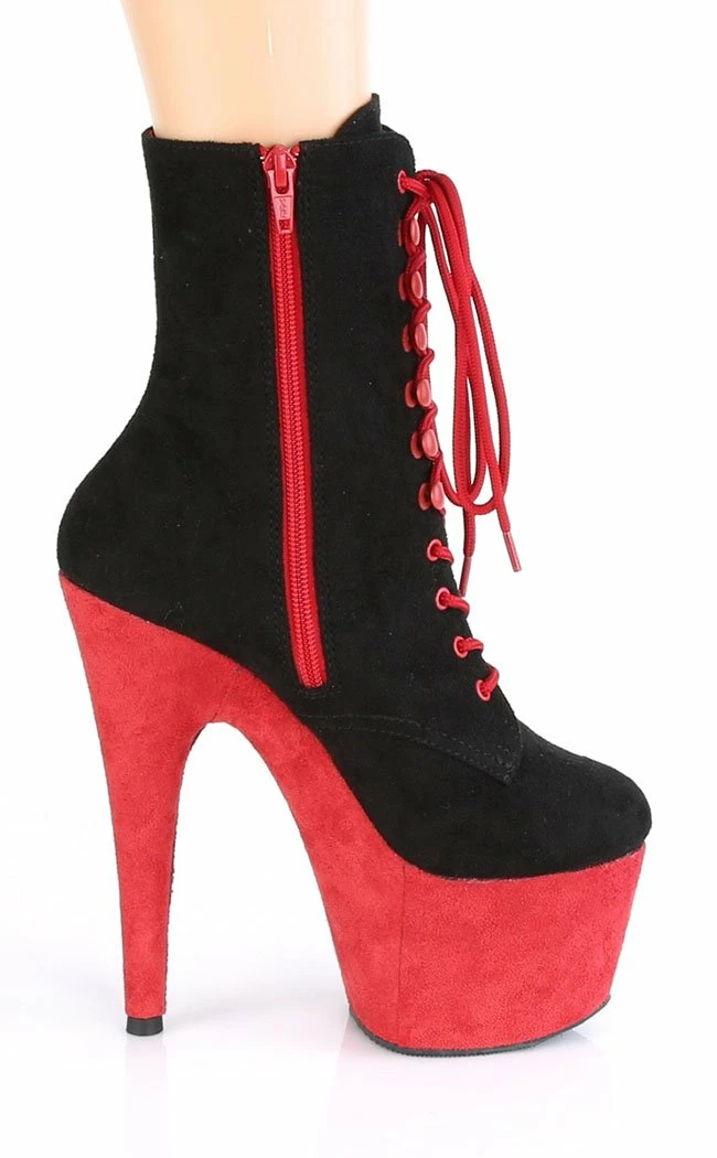Pleaser ADORE-1020 Black & Red Suede Boots