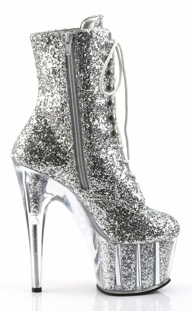7″ Heel, 2 3/4″ PF Lace-Up Glitter Ankle Boot, Side Zip