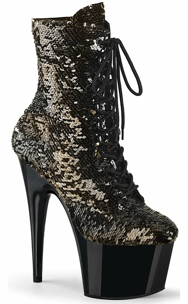 Pleaser ADORE-1020SQ Black/Gold Flip Sequin Boots