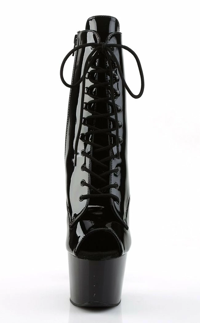 7″ Heel, 2 3/4″ PF Peep Toe Lace-Up Ankle Boot, Side Zip