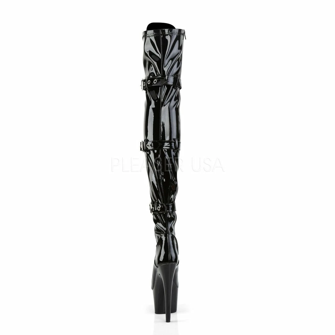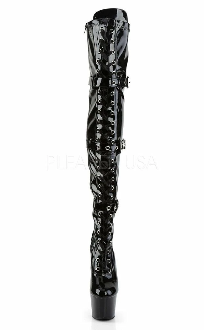 7″ Heel, 2 3/4″ PF Lace-Up Triple-Buckle Thigh Boot,Side Zip