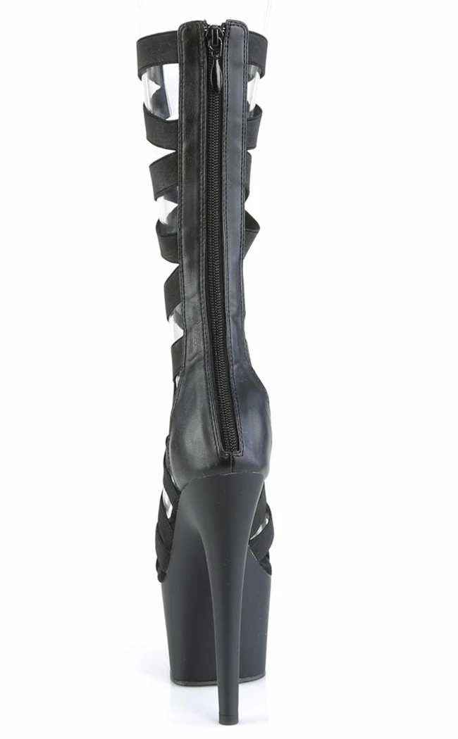 Look like a Greek goddess in these sexy sandals! The ADORE-700-48 heels feature mid-calf length elastic straps in a criss-crossΒ pattern that secure with a rear zip.