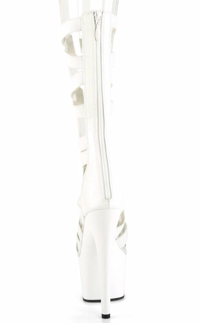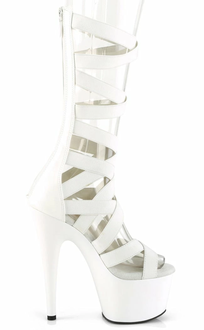 Look like a Greek goddess in these sexy sandals! The ADORE-700-48 heels feature mid-calf length elastic straps in a criss-crossΒ pattern that secure with a rear zip.