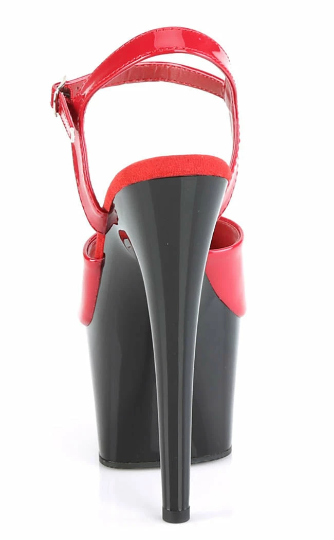 Make yer legs look red hot in theΒ ADORE 709 heels! AΒ red patent upper sits on a contrasting black platform, the perfectΒ sexy combo securing with a buckled ankle strap.