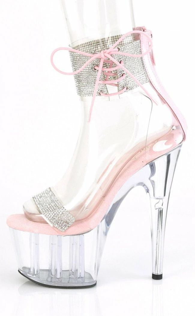 7″ Heel, 2 3/4″ PF Ankle Cuff Sandal w/Rhinestone, Back Zip