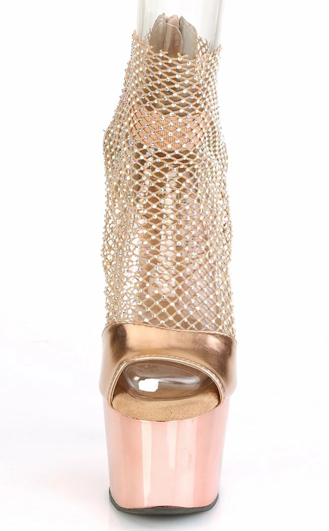 Fishnets just got an upgrade! These luxe heels are decked out in a layer of mesh studded with rhinestones, complete with a peep toe and elastic band at the ankle to keep you secure.