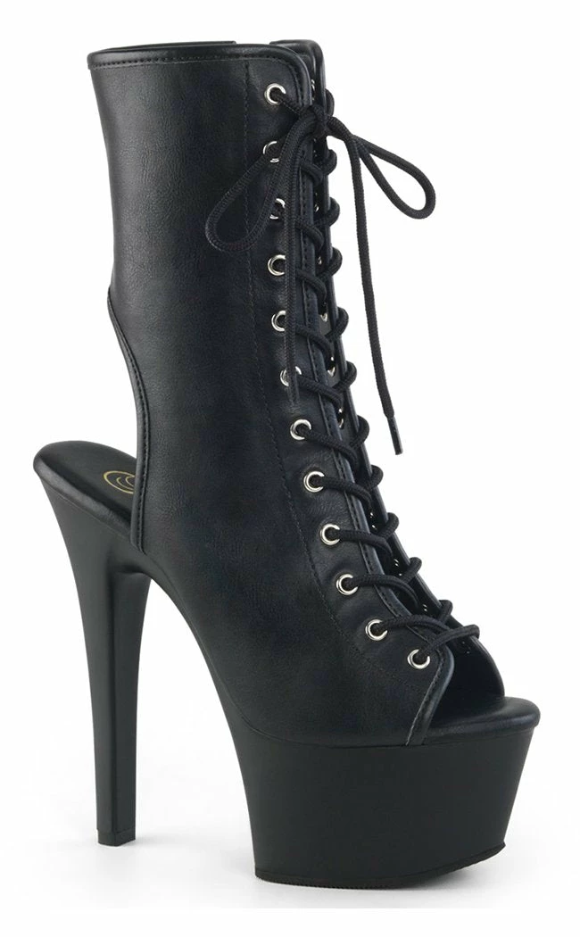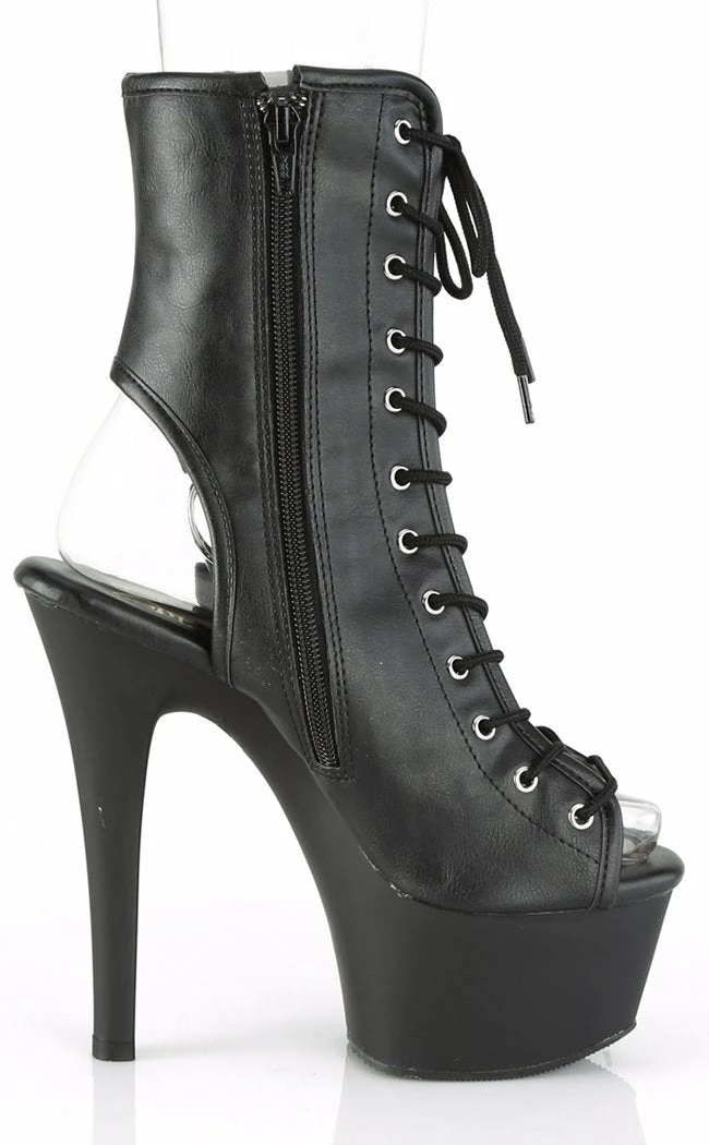 6″ Heel, 2 1/4″ PF Open Toe/Heel Ankle Boot, side Zip.