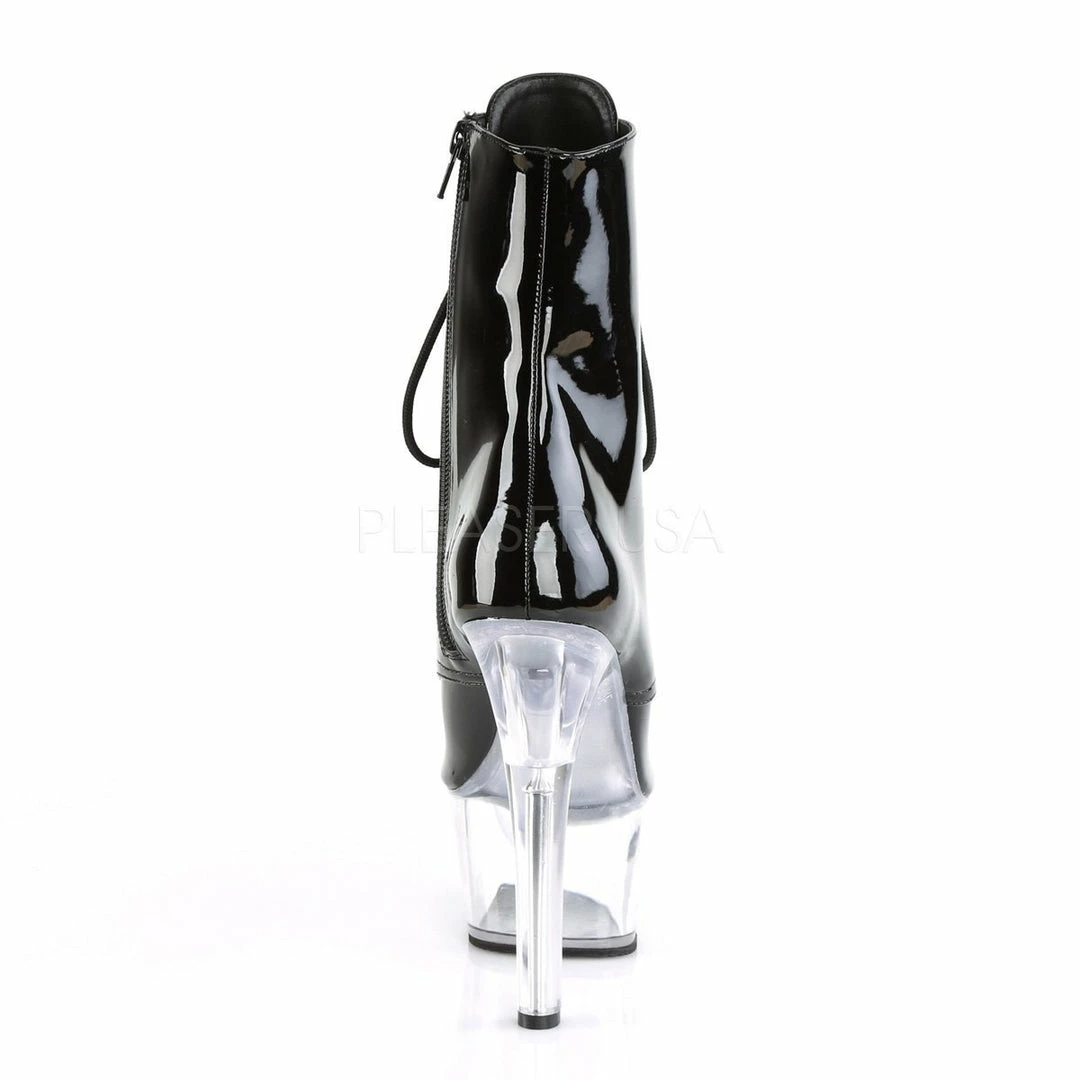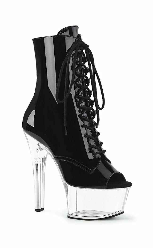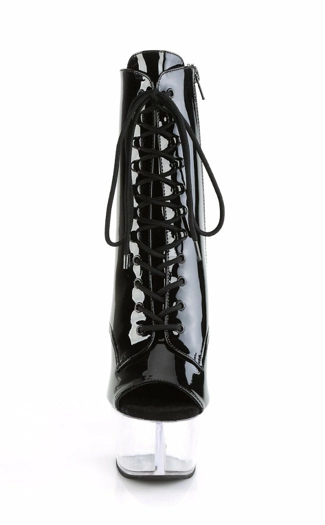 6″ (152mm) Heel, 2 1/4″ (57mm) Platform Open Toe Lace-Up Front Ankle Boot, Inside Zip Closure