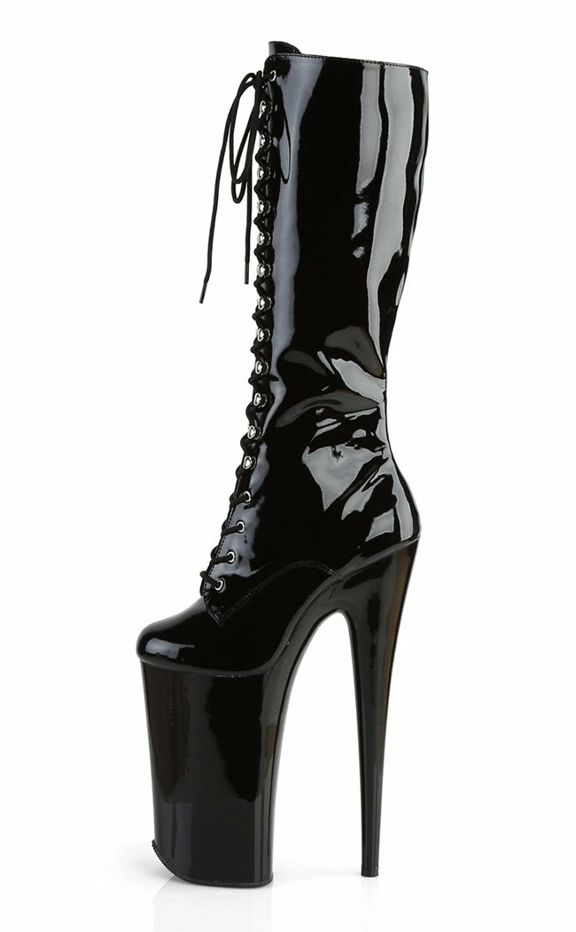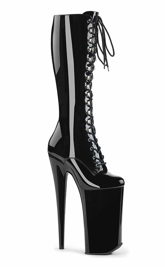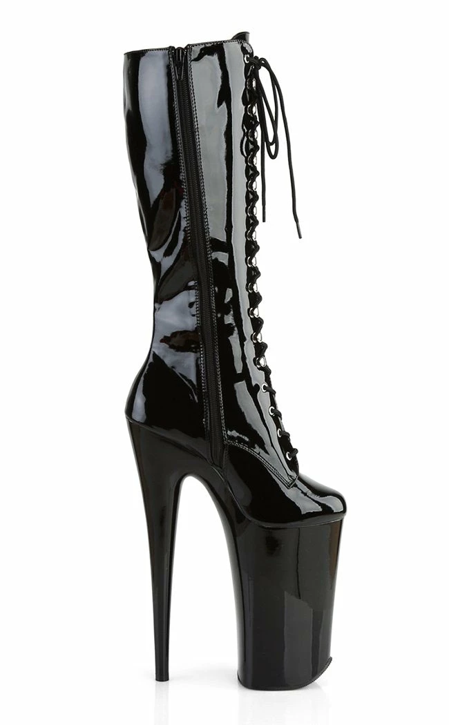 10″ Heel, 6 1/4″ PF Lace-Up Front Knee High Boot, Side Zip