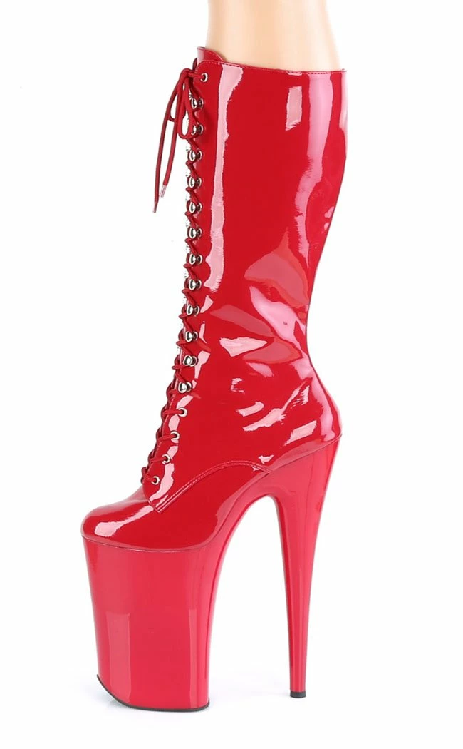 10″ Heel, 6 1/4″ PF Lace-Up Front Knee High Boot, Side Zip