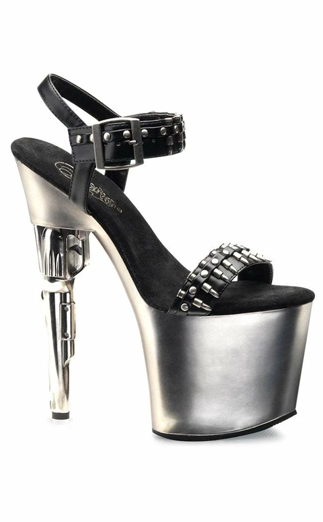 7 1/2″ Gun Heel Ankle Strap P/F Sandal W/Bullet