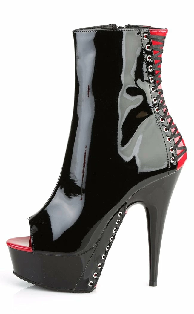 6″ Heel, 1 3/4″ PF Peep Toe Corset Style Ankle Boot, Side Zi