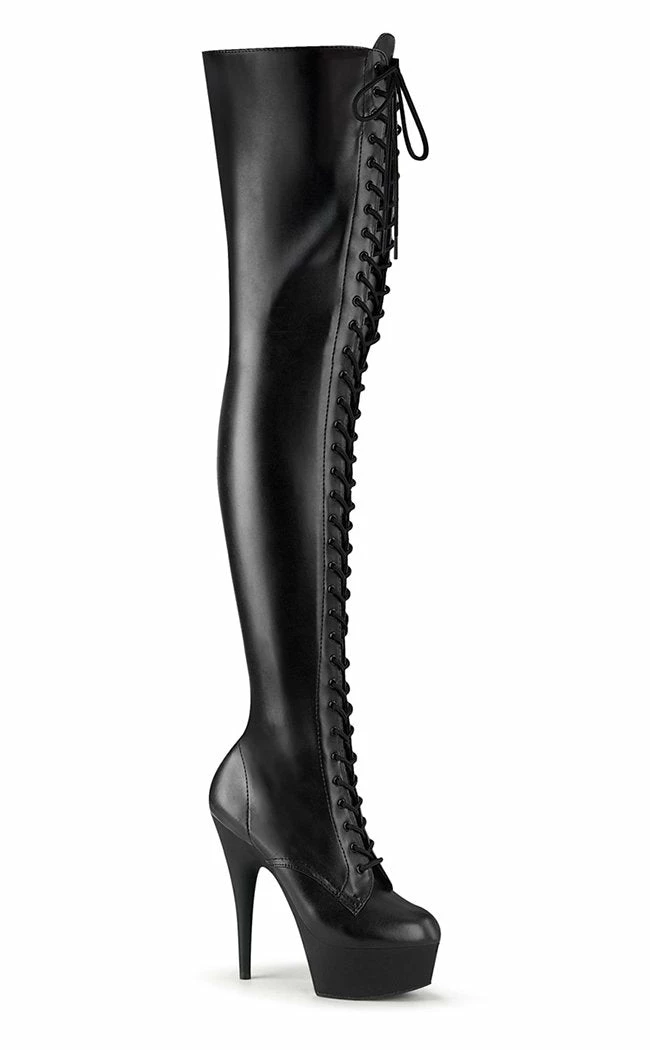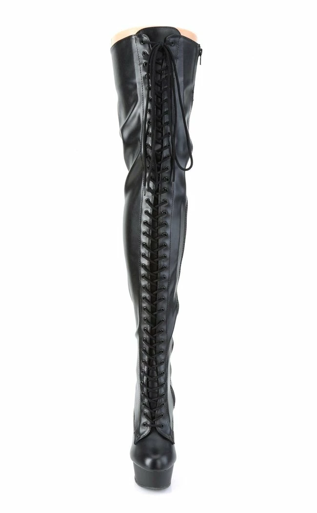 6″ Lace-Up Stretch PF Thigh Boot, Side Zip
