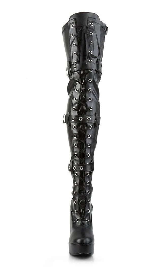 5″ Stack Heel, 1 1/2″ PF Front Lace-Up Thigh High Boot,Side
