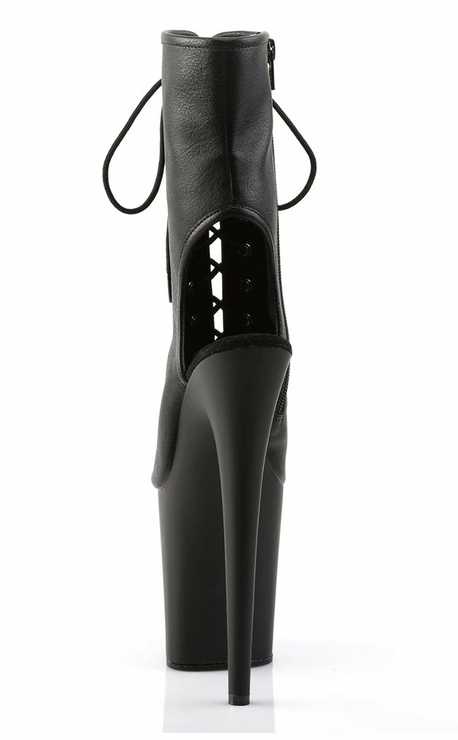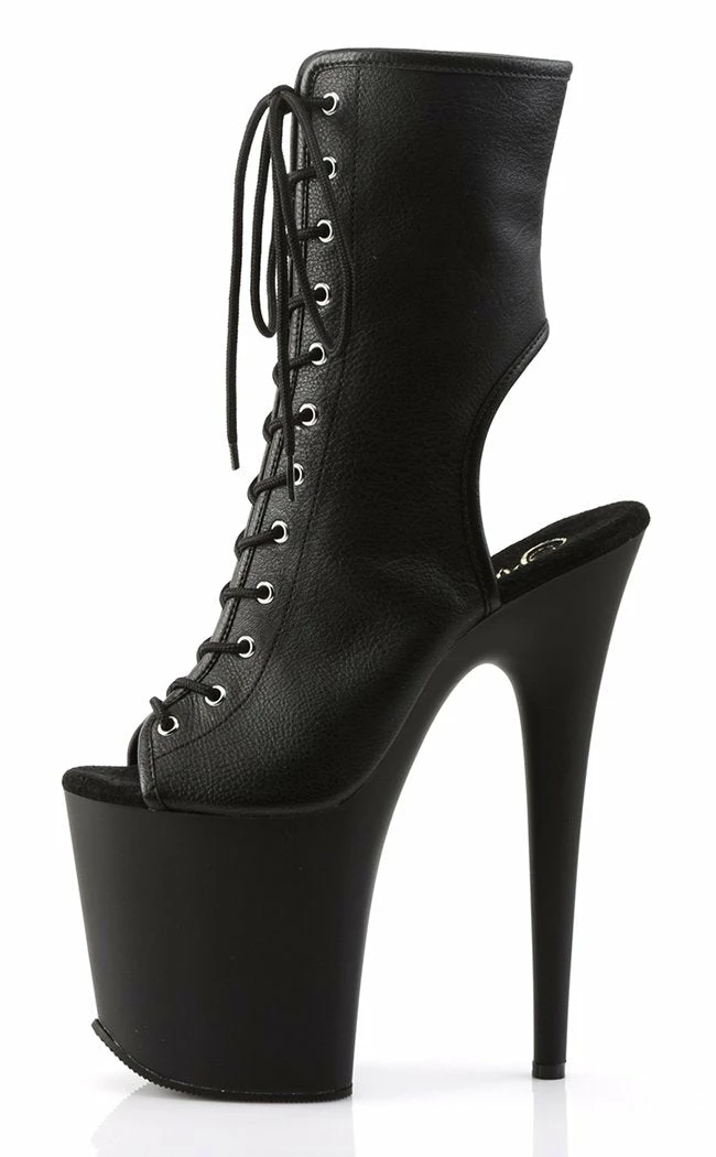 8″ Heel, 4″ PF Open Toe/Heel Lace-Up Ankle Boot, Side Zip