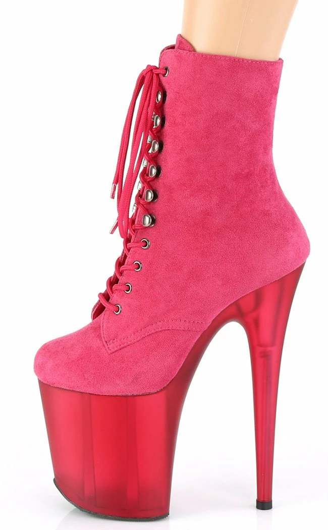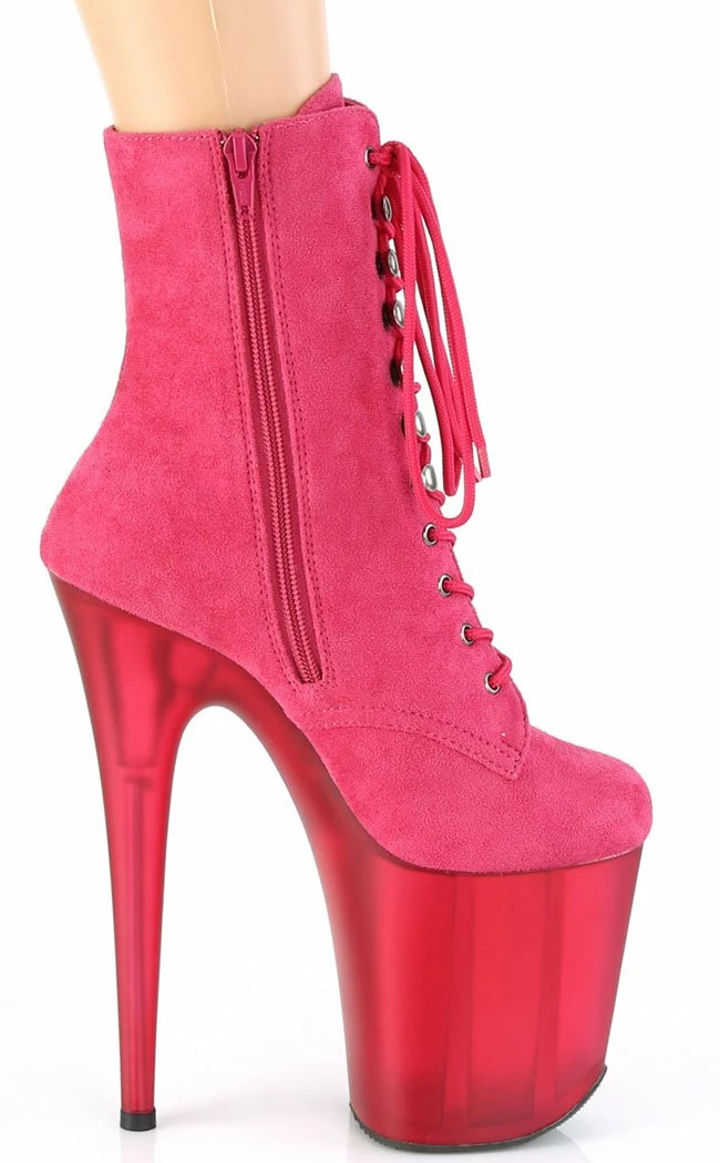 8″ (200mm) Heel, 4″ (100mm) Platform Lace-Up Front Ankle Boot Featuring Tinted Platform BottomΒ