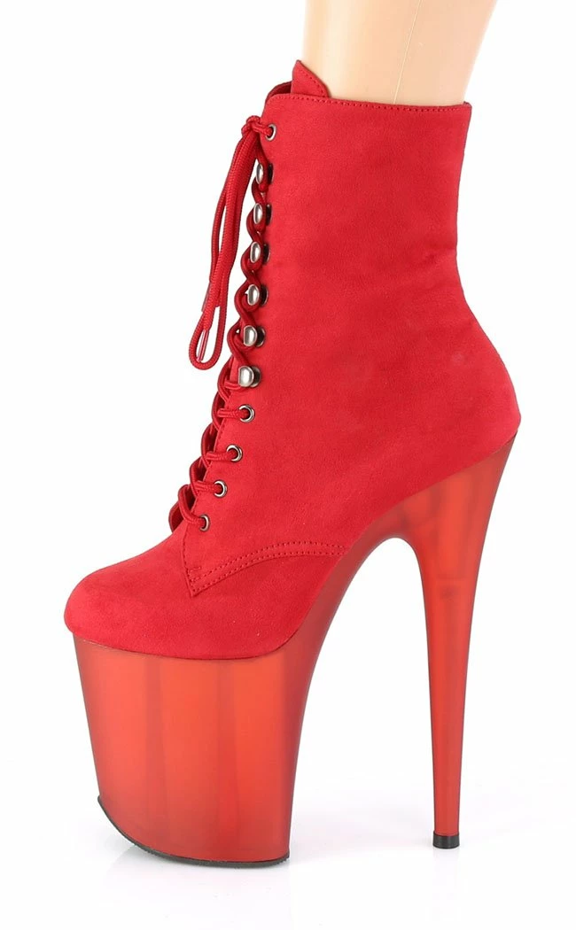 8″ (200mm) Heel, 4″ (100mm) Platform Lace-Up Front Ankle Boot Featuring Tinted Platform BottomΒ