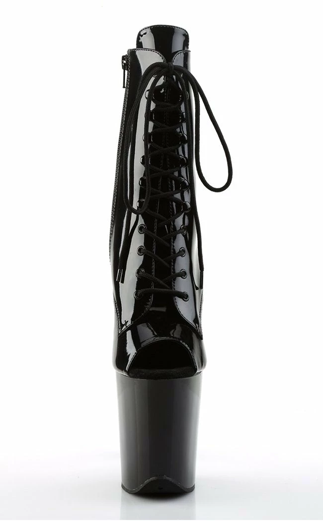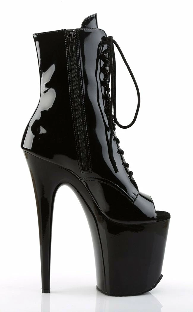 8″ Heel, 4″ PF Peep Toe Lace-Up Ankle Boot, Side Zip