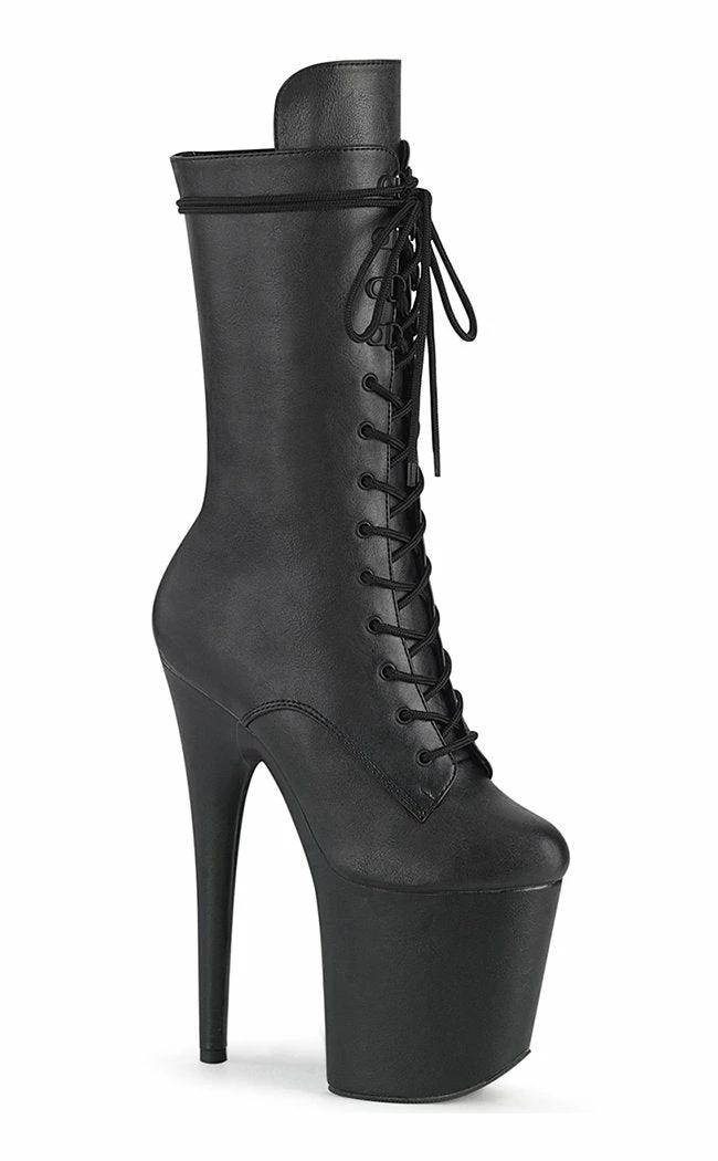 8″ Heel, 4″ PF lace-up front mid calf boot, side zip