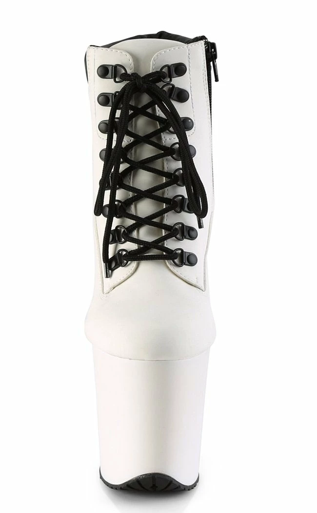 How cute are these babies? Designed to look like work boots! 8″” (200mm) Heel, 4″” (100mm) Platform Lace-Up Front Bootie Featuring Padded Collar & Rubber Lug Outsole, Inside Zip Closure.