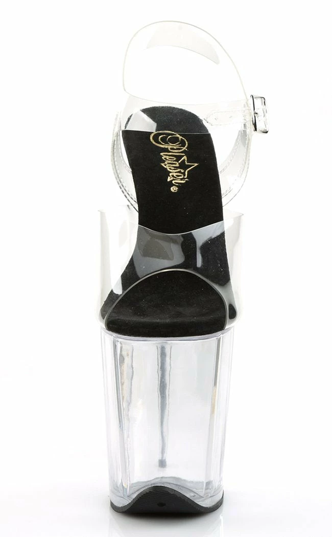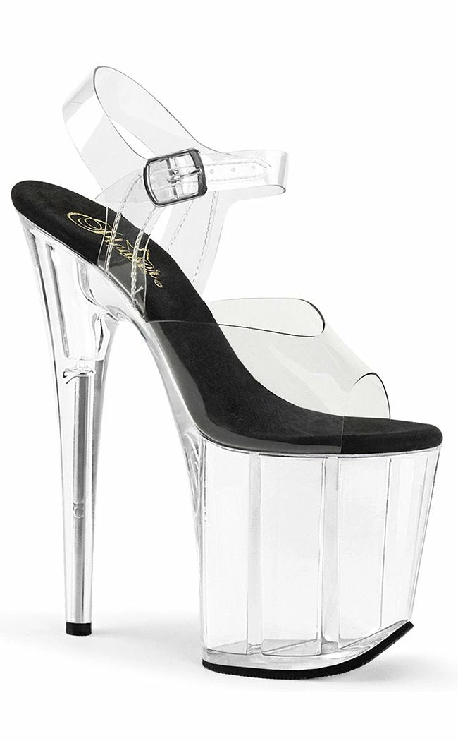 Stand tall, babe! You’ll be towering over the crowd in the Flamingo series. These pole-dancingΒ shoes feature a crystal clear upper, platform and stiletto heel with contrasting black footbed.