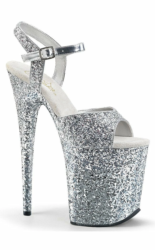 8″ Heel, 4″ PF Glitter Ankle Strap Sandal