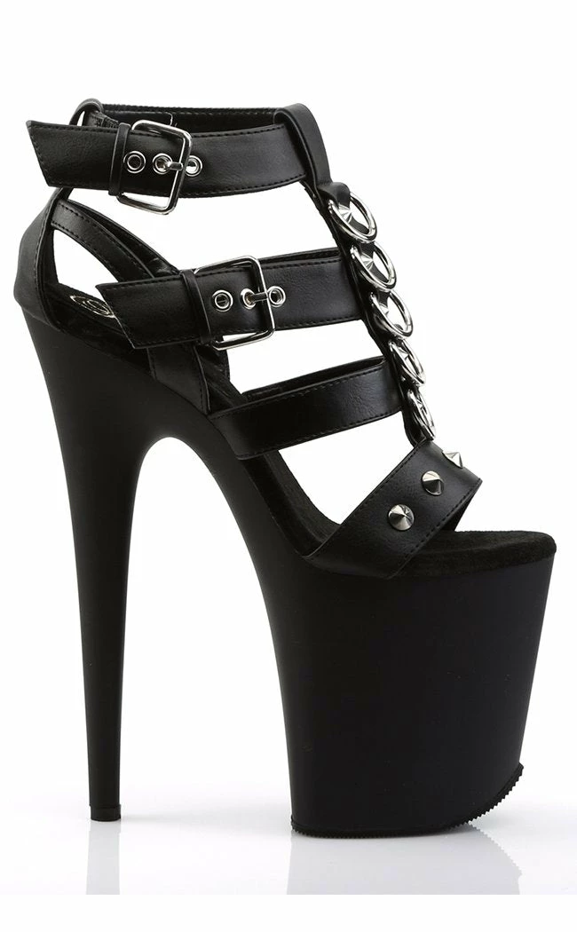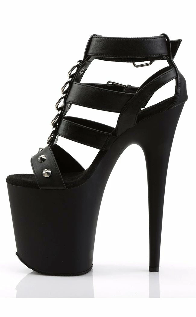 8″ Heel, 4″PF Strappy Sandal w/Rings and Studs Detail