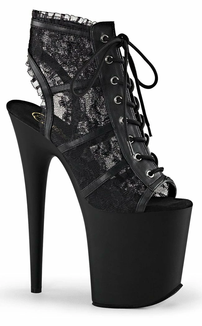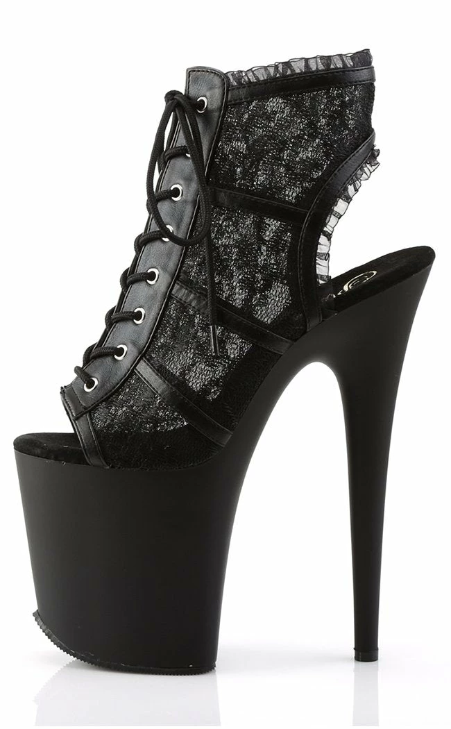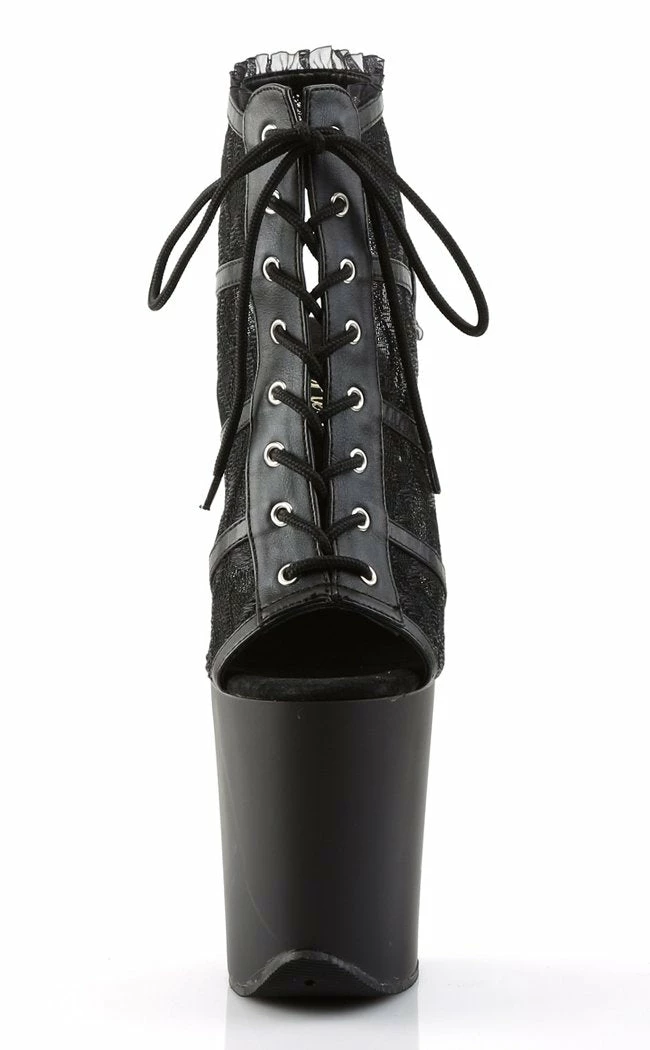 8″ Heel, 4″ PF Open Toe/Heel Lace-Up Ankle Boot, Side Zip