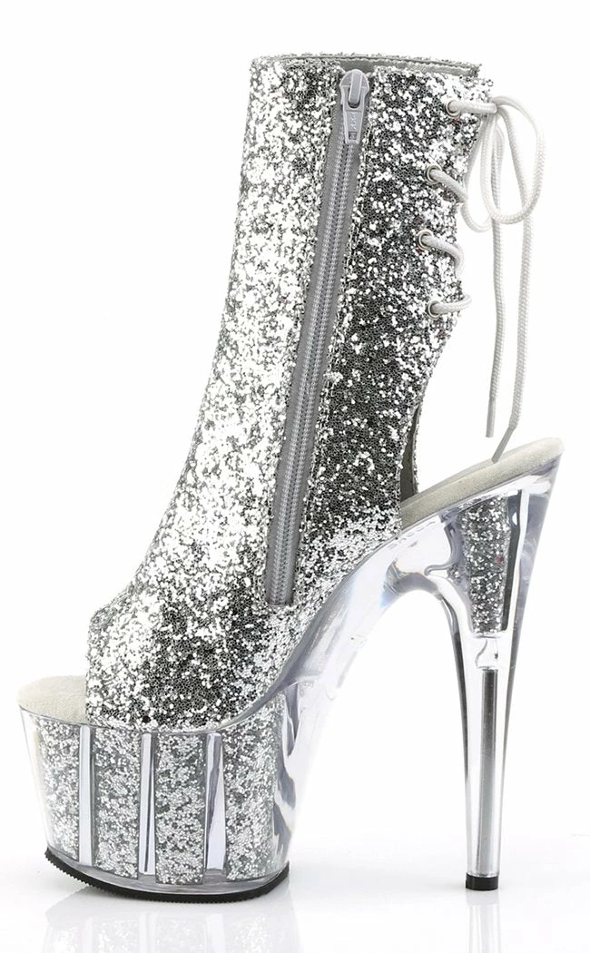 7″ Heel, 2 3/4″ PF Glitter Ankle Boot, Side Zip