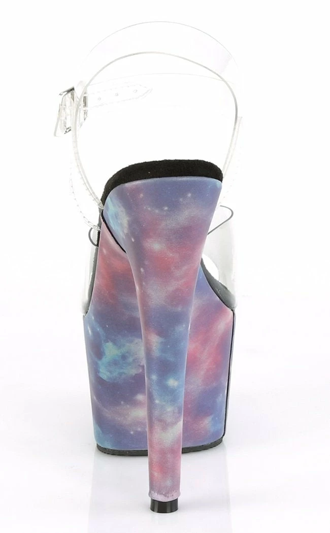 Awesome galaxy effectΒ platform heels with clear upper.Β Popular for pole and exotic dancers, these babies ooze sex appeal and glamour.Β