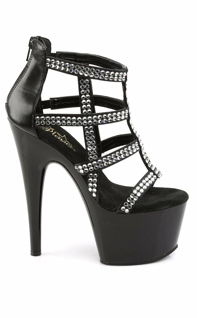7″ Heel, 2 3/4″ PF Rhinestone Embellished Cage Bootie Sandal