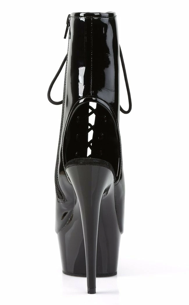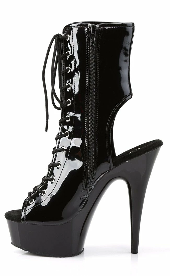 6″ Heel, 1 3/4″ PF Open Toe/Back Lace-Up Bootie, Side Zip