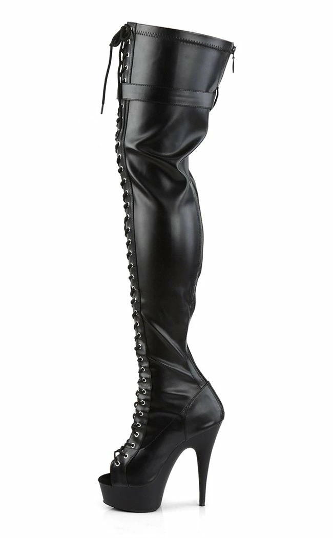 6″ Heel, 1 3/4″ PF Peep Toe Lace-up Thigh Boot, Back Zip